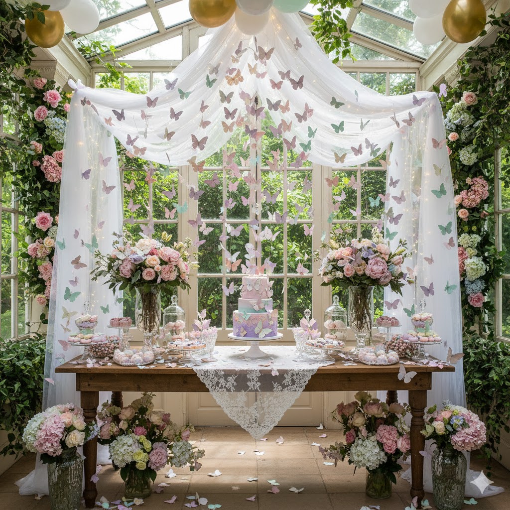 Transform any space into a magical retreat with elegant fabric drapes, fairy lights, and floral accents, creating a dreamy and private ambiance.