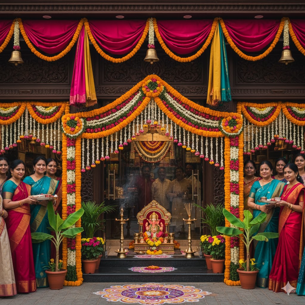 Elaborate, often culturally specific, decorations used to celebrate major religious, seasonal, or cultural festivals.