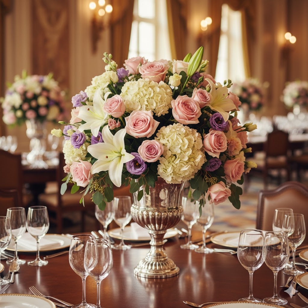 The art of arranging fresh or artificial flowers to enhance the aesthetic appeal of a venue, creating vibrant, fragrant, and welcoming spaces.